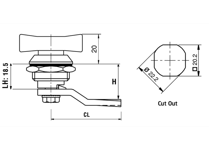 DESCRIPCIÓN: Cierre de 1/4 de vuelta de palomilla.