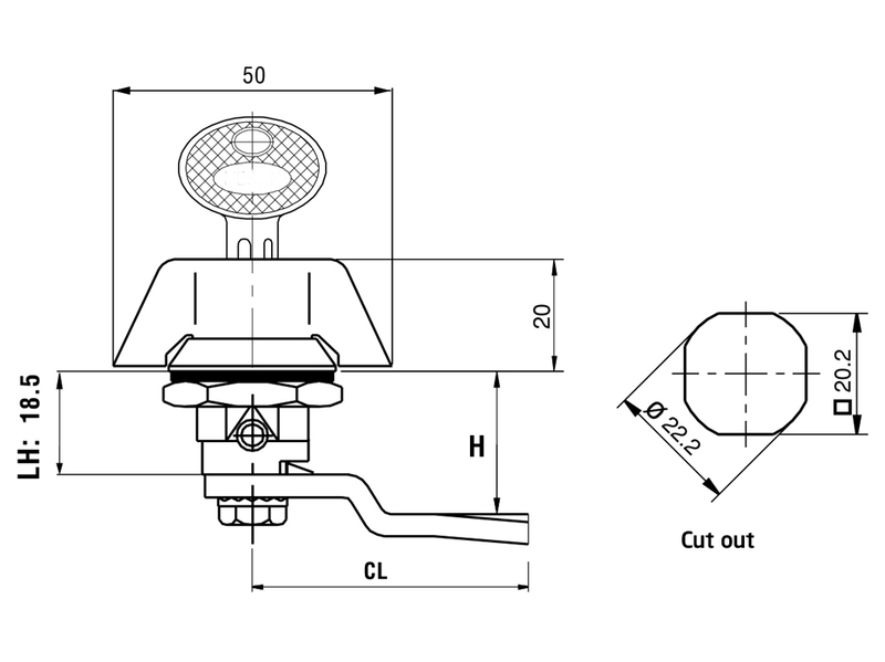 DESCRIPCIÓN: Cierre de 1/4 de vuelta con muletilla