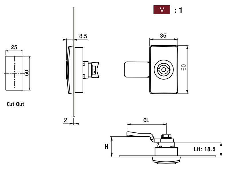 DESCRIPCIÓN: Cierre de 1/4 de vuelta con embellecedor.